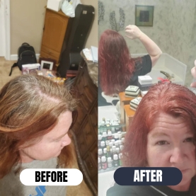 Unfortunately I didn’t take a before picture but my roots were so white! I left it in for 20 minutes to get the full coverage you see in the picture. My hair feels so fresh and silky, like I just came from the salon. I am so shocked at the results. This is a game changer! Love, love,love it!!